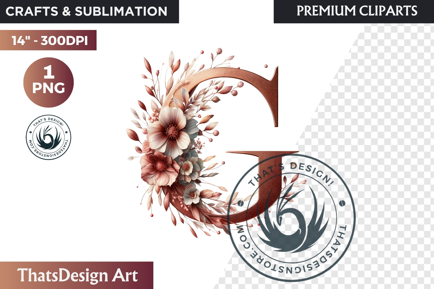 Floral Alphabet Rose Gold wedding Clipart wedding Floral arrangements - Transparent PNGs for Crafts and sublimation Designs