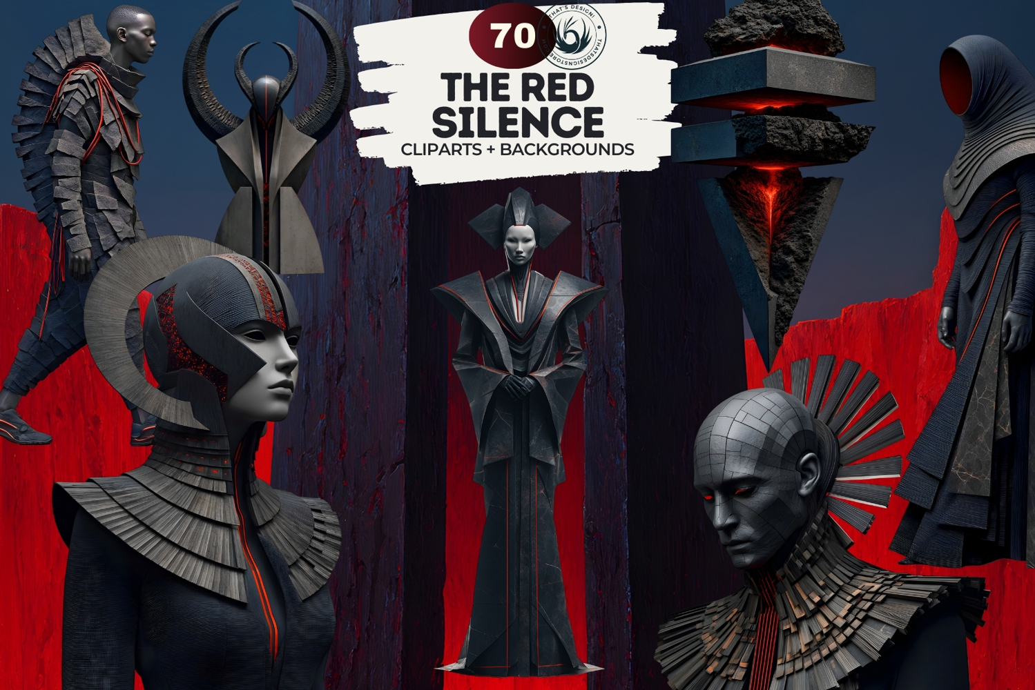 Red Silence Characters Cliparts & Backgrounds Fantasy art example image 1