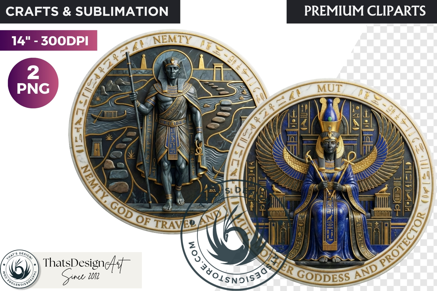 This set includes detailed representations of the entire pantheon, including Ra, Anubis, Isis, Osiris, Horus, Thoth, Hathor, and many more obscure deities. These graphics are ideal for creating high-end sublimation designs for t-shirts, custom coasters, unique stickers, mythology-themed junk journals, and striking wall graphics. 🦅🔥
