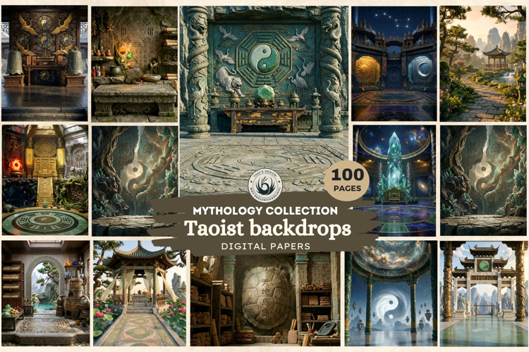Similar Design Products to Taoist Mythology Backdrops for Junk Journal and Scrapbooking