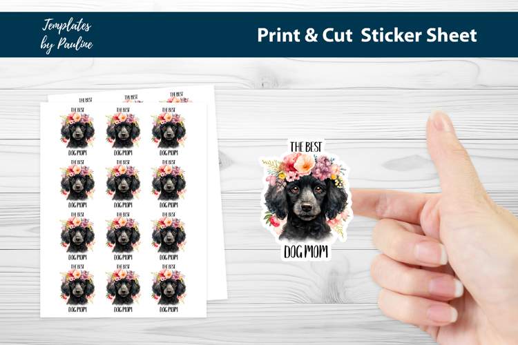 Watercolor best dog mom sticker. Printable or digital sticker with a Poodle for book lovers. This dog breed printable sticker sheet is perfect for print and cut, digital planners, digital stickers, notebooks, scrapbooking, gift decorating, and more projects.