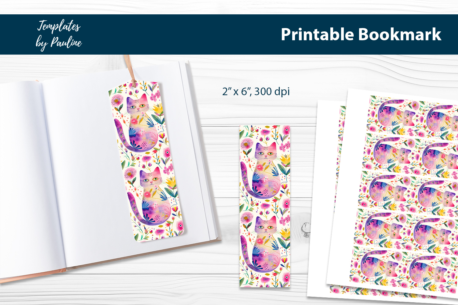 Similar Design Products to Flower Cat Bookmark Sublimation, Printable Bookmark