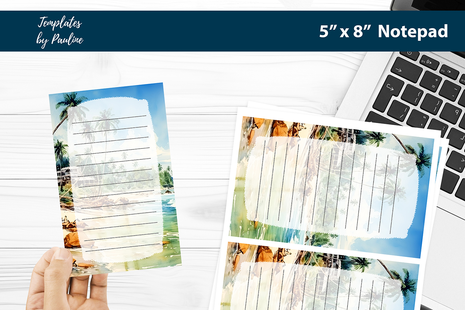 Tropical Beach Notepad Printable Gift for Her, Memo Pad