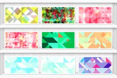 80 ready-to-use color triangles geometry backgrounds color combinations in total. If you need other colors or tones, you can easily change the existing backgrounds using the help file included in the package.
