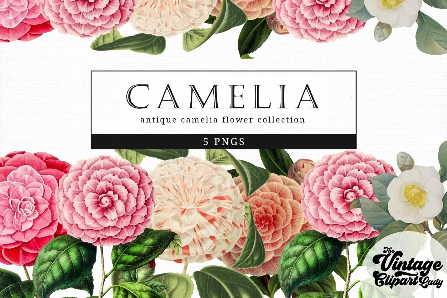 Camelia Vintage Floral Botanical Clip Art example image 1