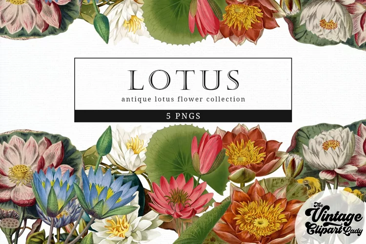 Similar Design Products to Lotus Vintage Floral Botanical Clip Art
