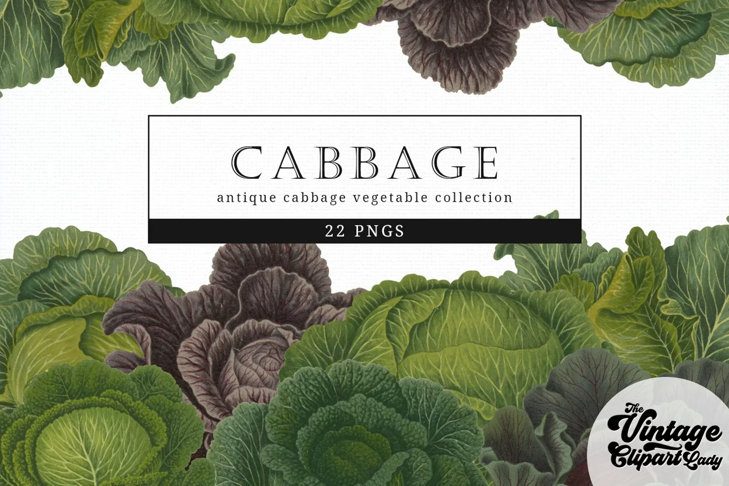 Similar Design Products to Cabbage Vintage Vegetable Botanical Clip Art