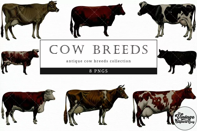 Similar Design Products to Cow Breeds Vintage Animal illustration Clip Art, Clipart