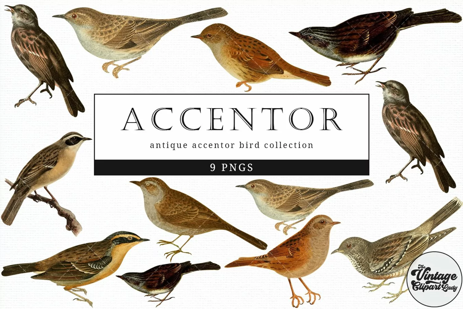 Similar Design Products to Accentor Vintage Animal illustration Clip Art, Clipart
