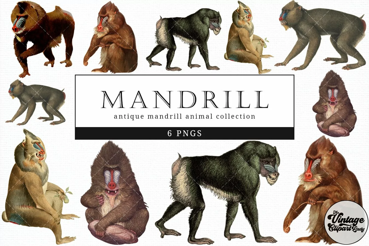 Similar Design Products to Mandrill Vintage Animal illustration Clip Art, Clipart