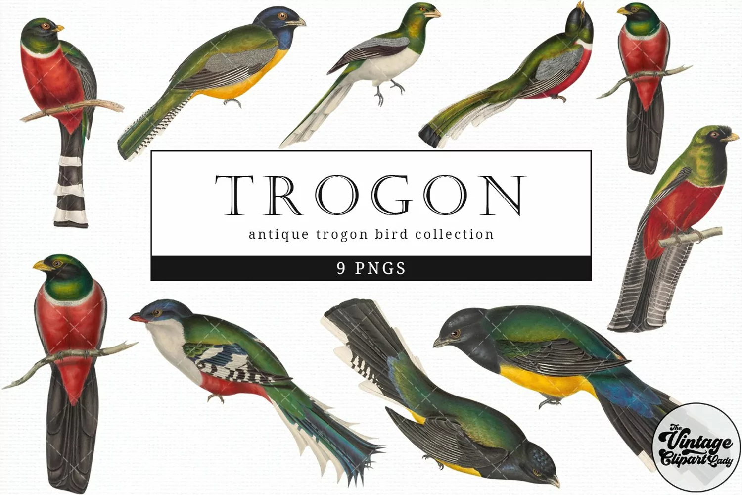 Similar Design Products to Trogon Vintage Animal illustration Clip Art, Clipart