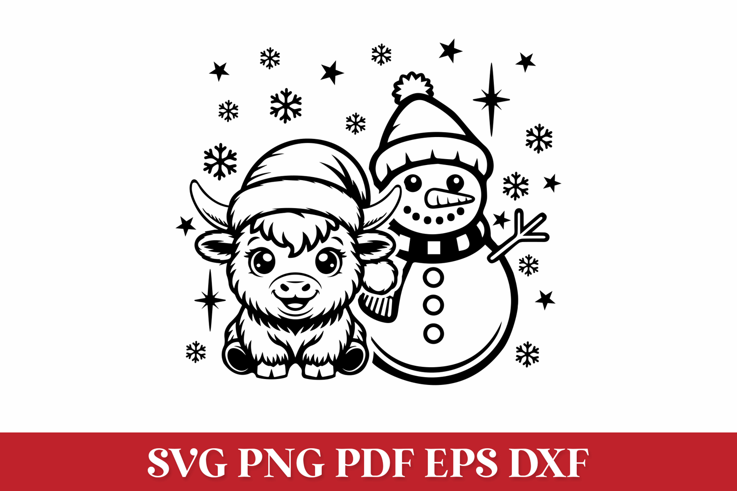 - Highland Cow with Snowman in SVG, PNG, PDF, EPS & DXF format