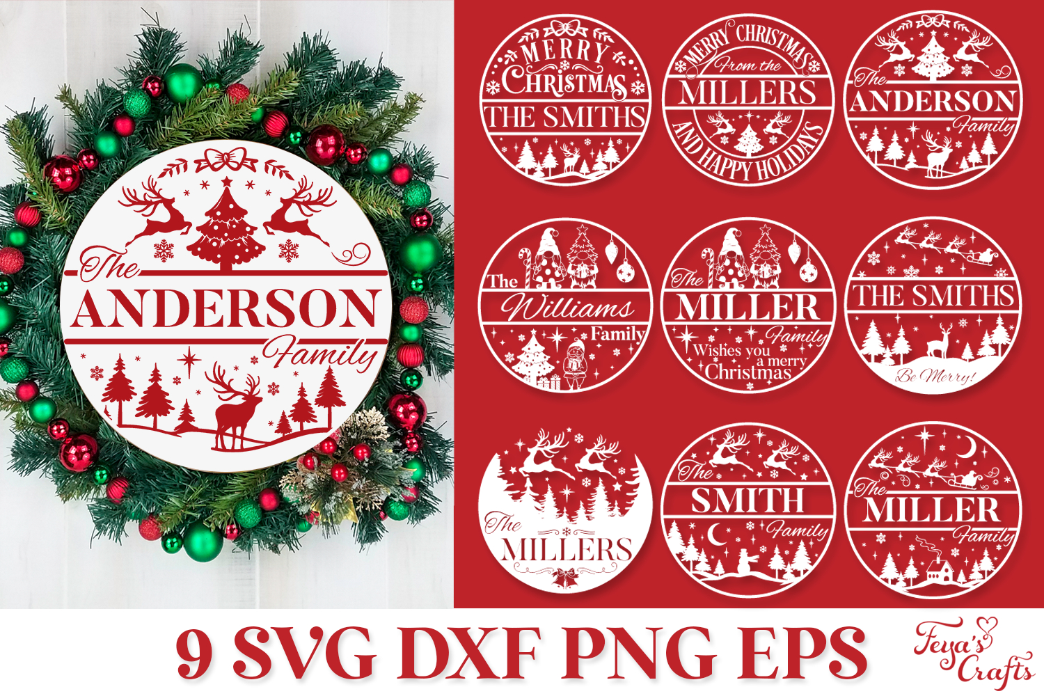 - 9 Round Christmas Family Name Split SVGs with no borders