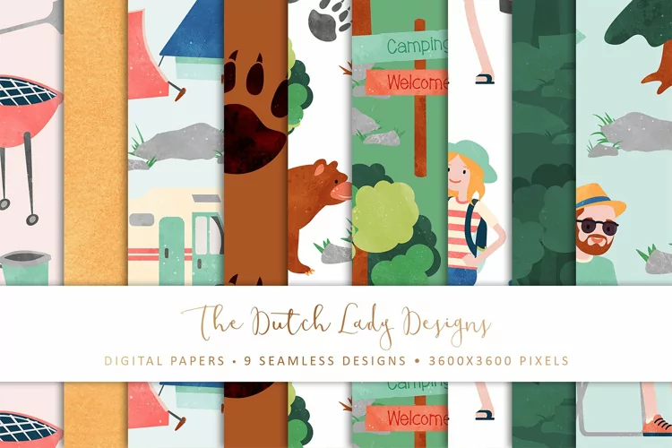 Digital Paper Digital Background Campsite Printable Paper Scrapbook Paper Seamless Design Paper Design Crafts Paper Camping Patterns Tileable Backgrounds