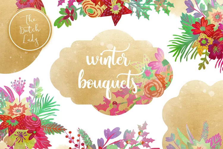 Winter Bouquet & Label Clipart Set