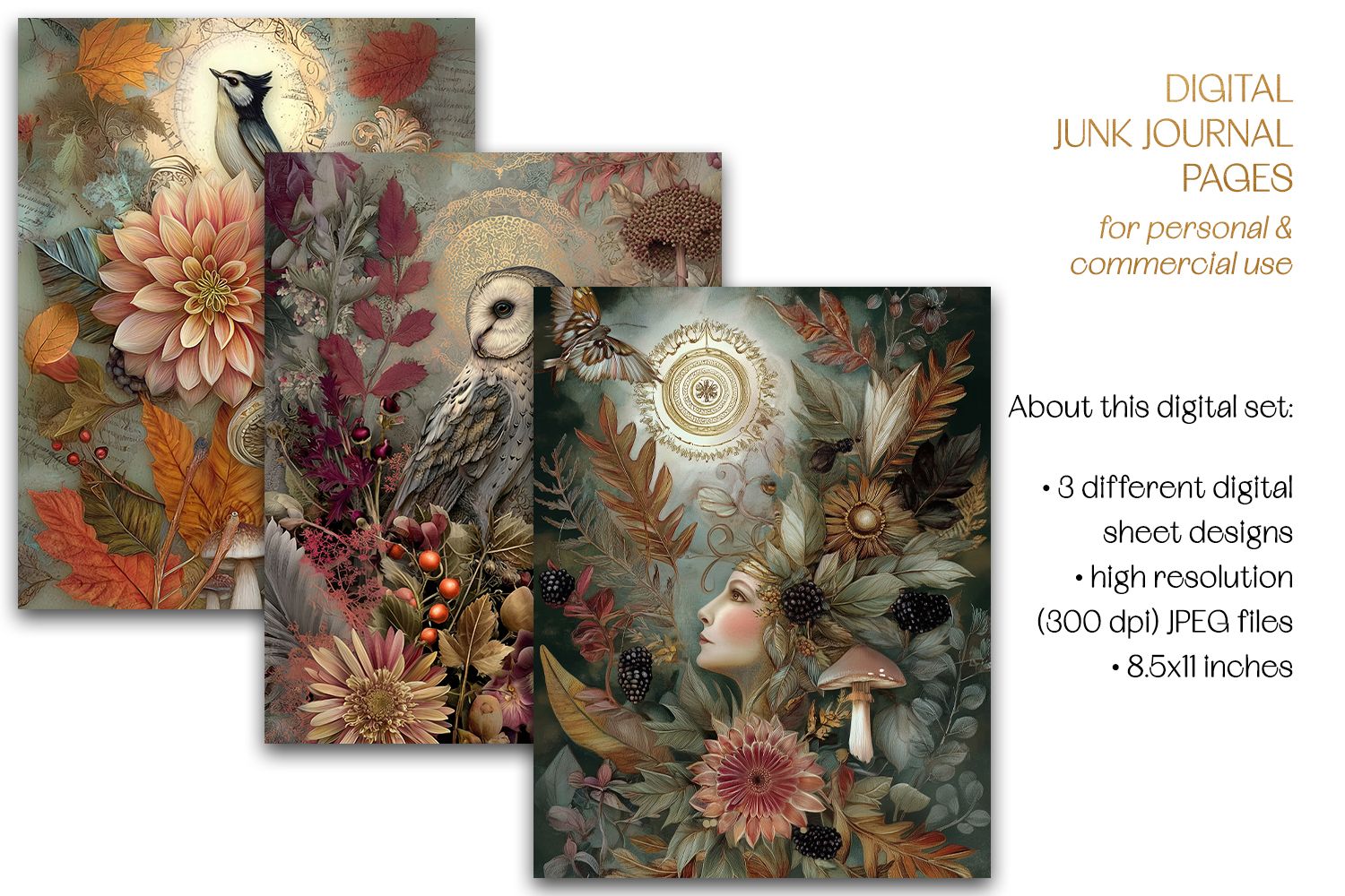 Enchanted Autumn Junk Journal Sheets - 3 JPEG Files