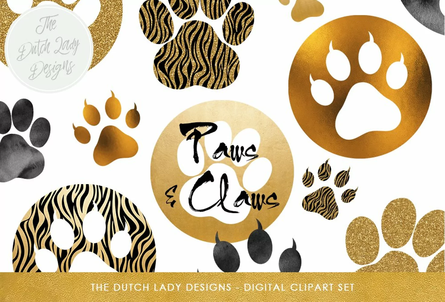 Gold Black Clipart White Glitter Animal Print Scrapbook Clipart Animal Clipart Paw Clipart Claw Clipart