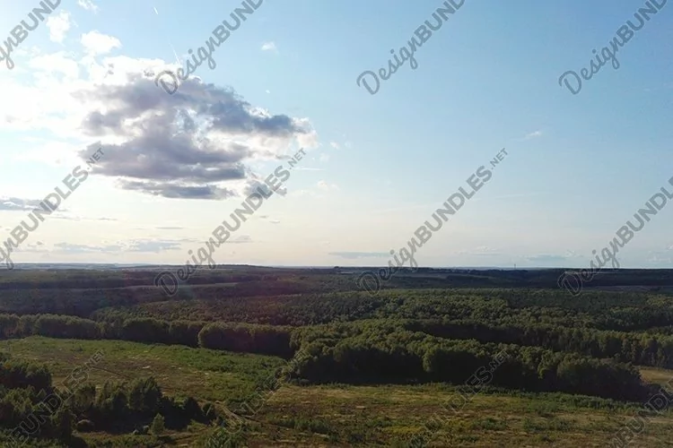 Top view drone shot of a green field.