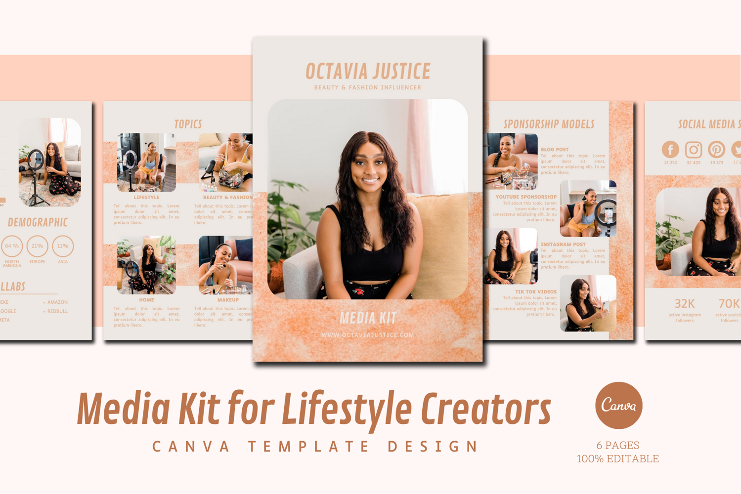 Featuring soft peach tones, clean layouts, and a modern aesthetic, it’s perfect for influencers, bloggers, small companies, and content creators who want to showcase their work to potential partners in a way that feels professional, stylish, and inviting.