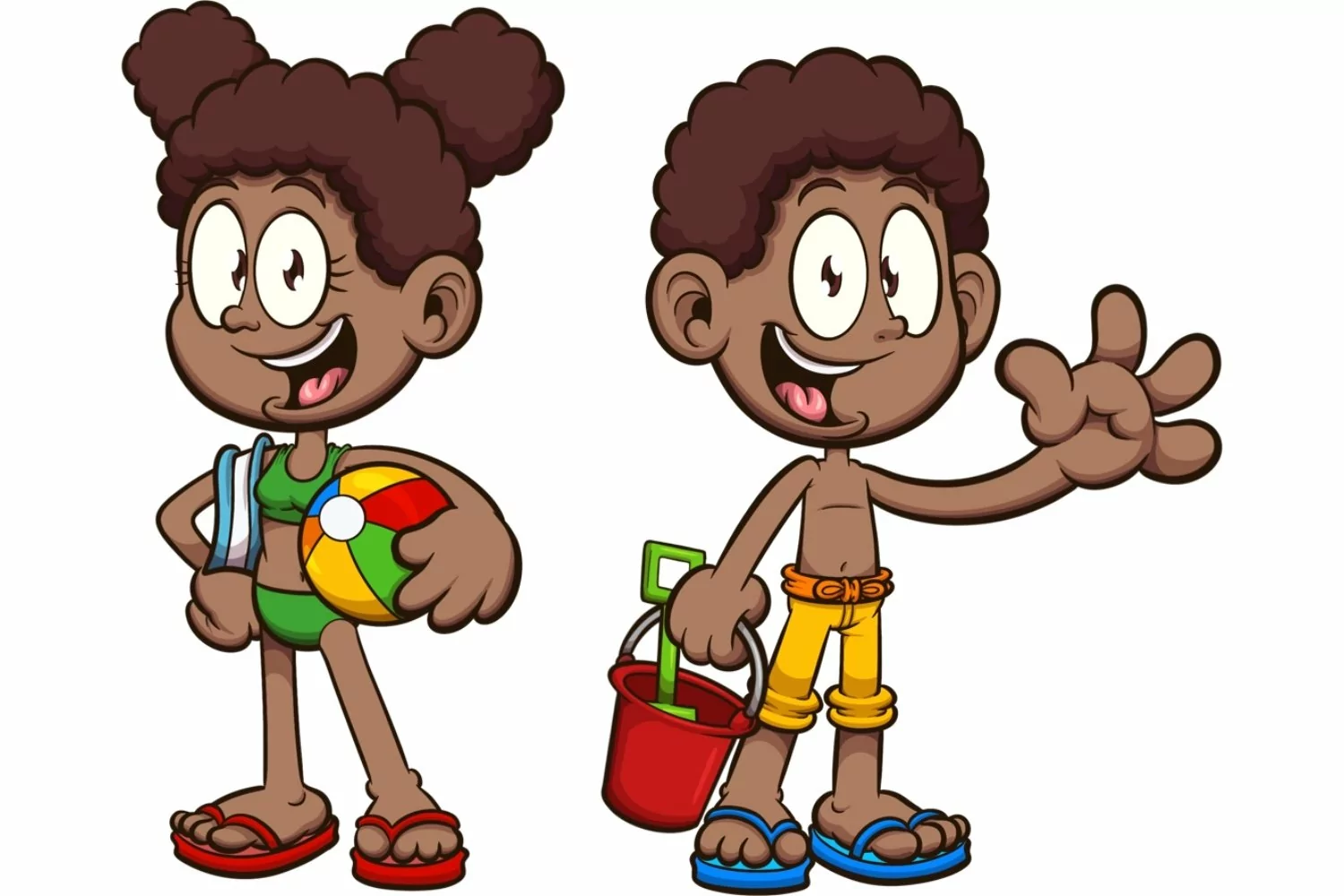 Children Cartoon Vector Kids Summer Black Beach Vacation Black Kids Cartoon Black Kids In Swimsuits