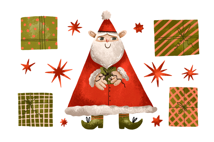 Similar Design Products to Cartoon Santa Claus with Presents. Cheerful Santa Claus