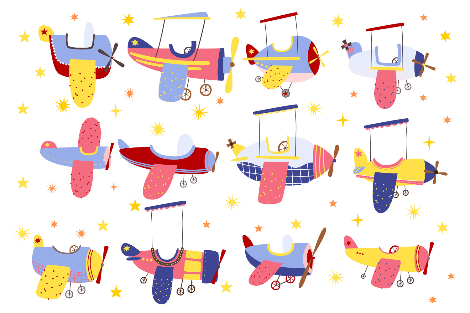 Bring a touch of whimsy to your creative projects with this premium collection of 12 hand-drawn cartoon airplanes!