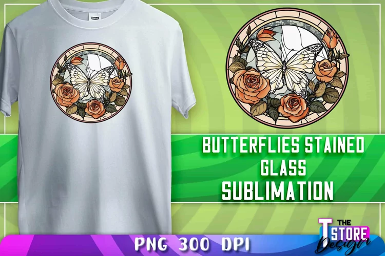 Butterflies Stained Glass Sublimation | T-Shirt Design | PNG File