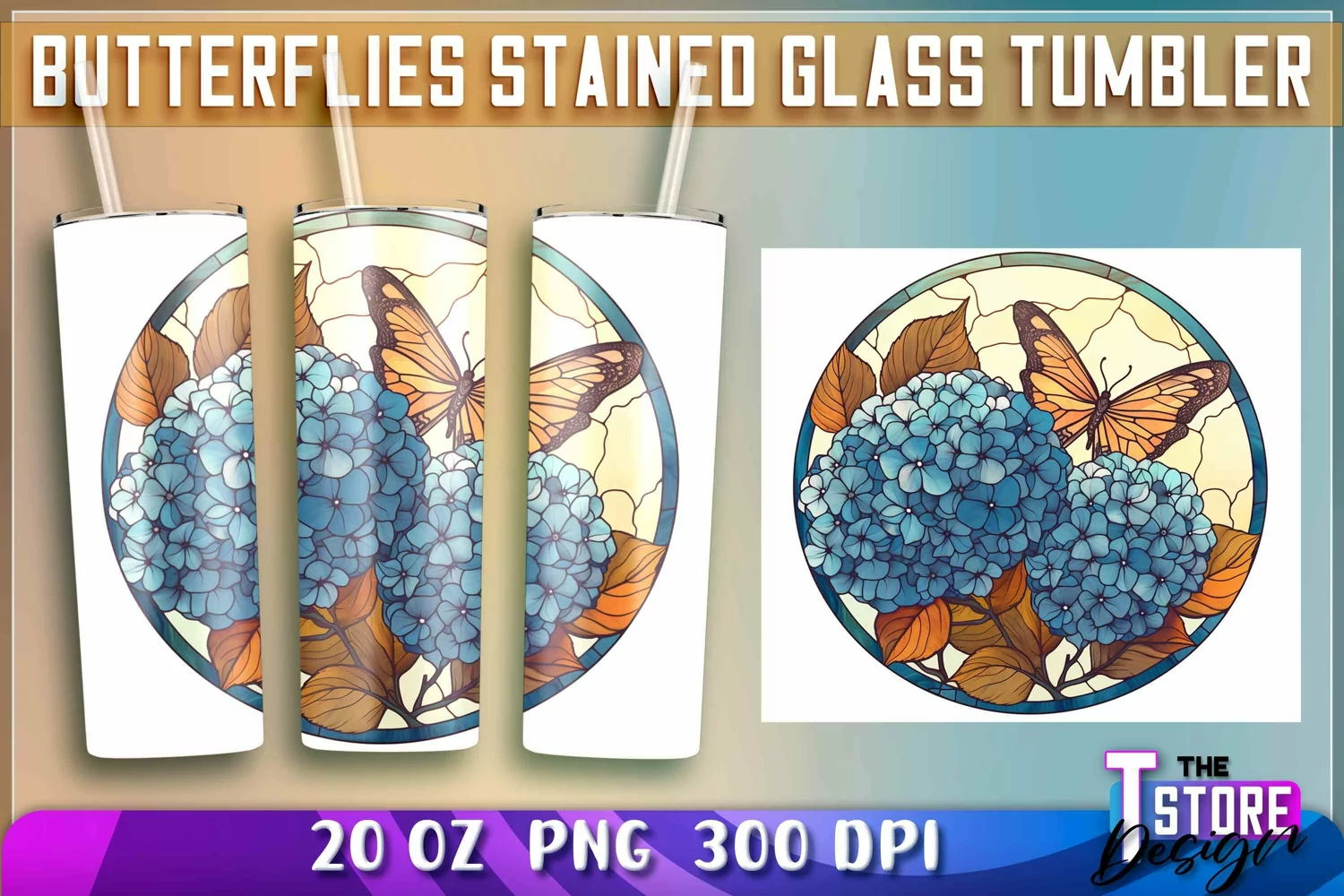 Similar Design Products to Butterflies Stained Glass Tumblers Wrap 20 oz. | PNG 300 DPI