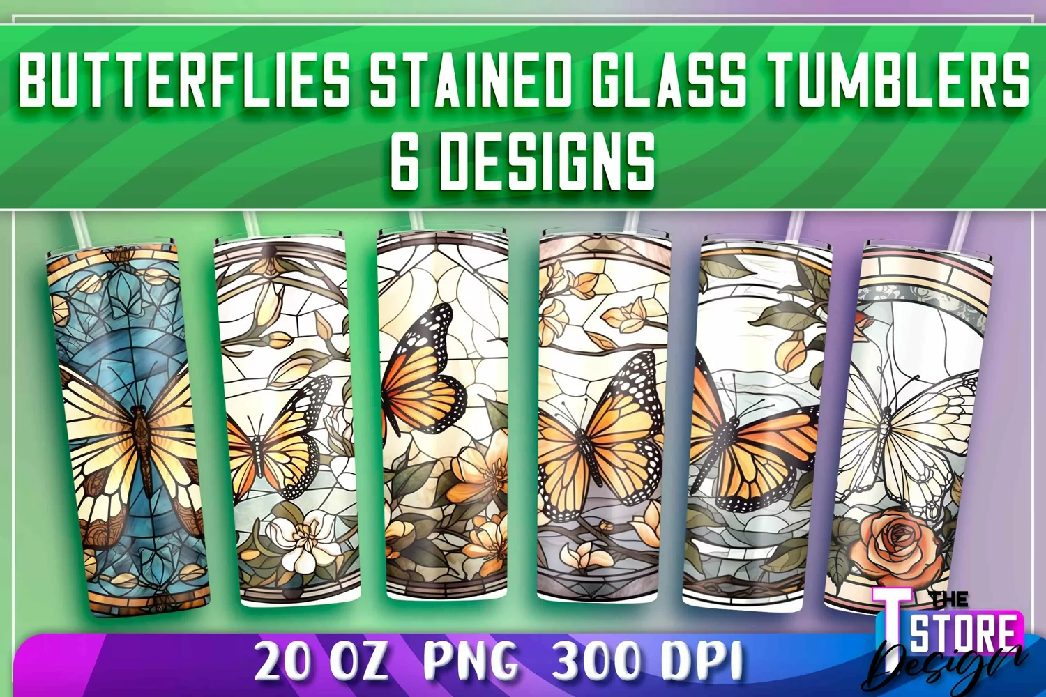 Similar Design Products to Butterflies Stained Glass Tumblers Wrap 20 oz. | PNG 300 DPI