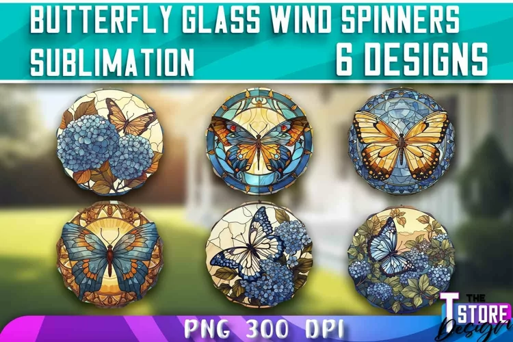 Butterflies Stained Glass Wind Spinners Sublimation | PNG Design