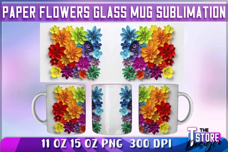 Paper Flowers Mug Sublimation | 11 oz 15 oz Mug Design