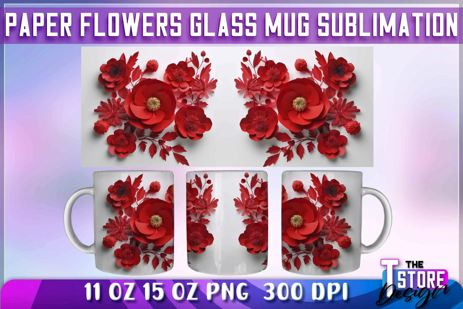 Paper Flowers Mug Sublimation | 11 oz 15 oz Mug Design example image 1