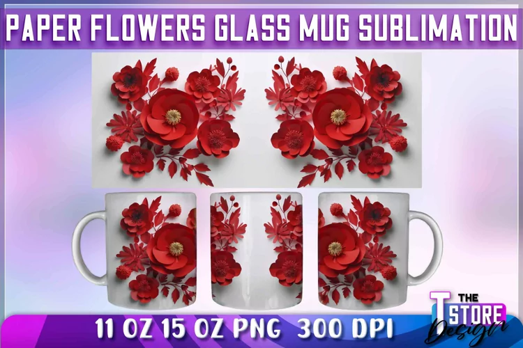 Paper Flowers Mug Sublimation | 11 oz 15 oz Mug Design