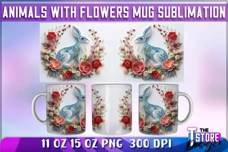 Animals With Flowers Mug Sublimation | 11 oz 15 oz