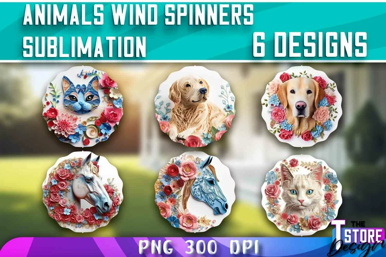 Animals With Flowers Wind Spinners Sublimation | PNG Design example image 1