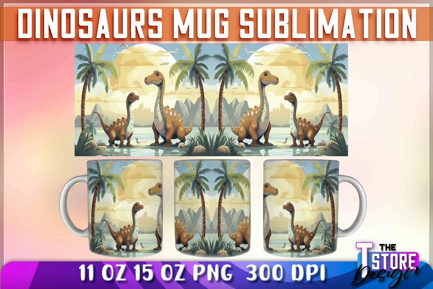 Dinosaurs Mug Sublimation | 11 oz 15 oz Mug | Dinosaurs PNG example image 1