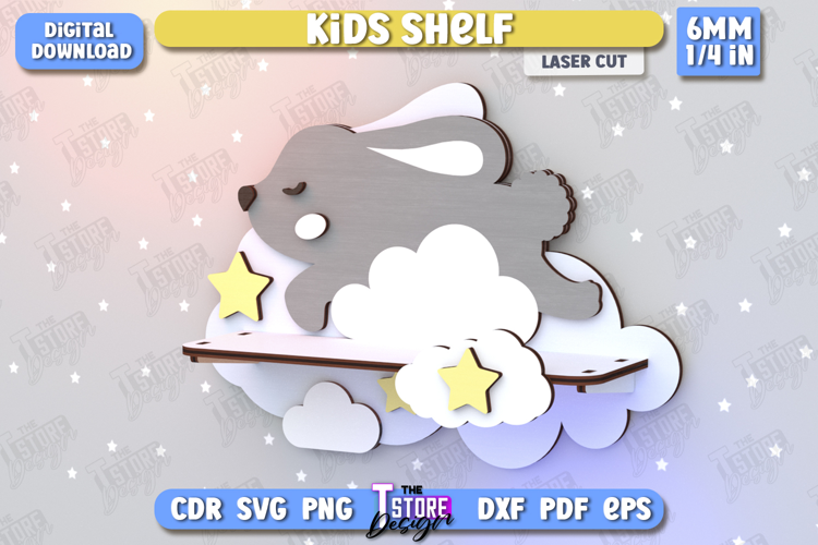 Kids Shelf Laser Cut | Rack Template | Nursery Décor | Kids Room | Book Rack | CNC File