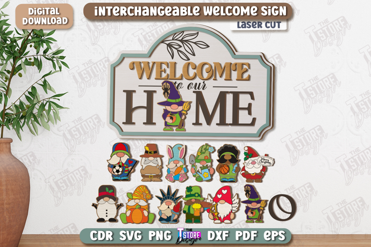 Interchangeable Welcome Wall Sign Laser Cut | Round Sign | 3D Home Wall Decor | CNC File