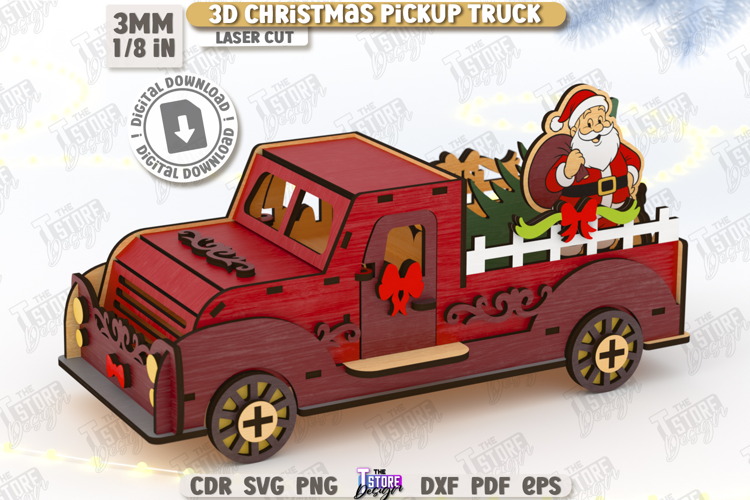 3D Christmas Pickup Truck Laser Cut|3D Car Model|Constructor