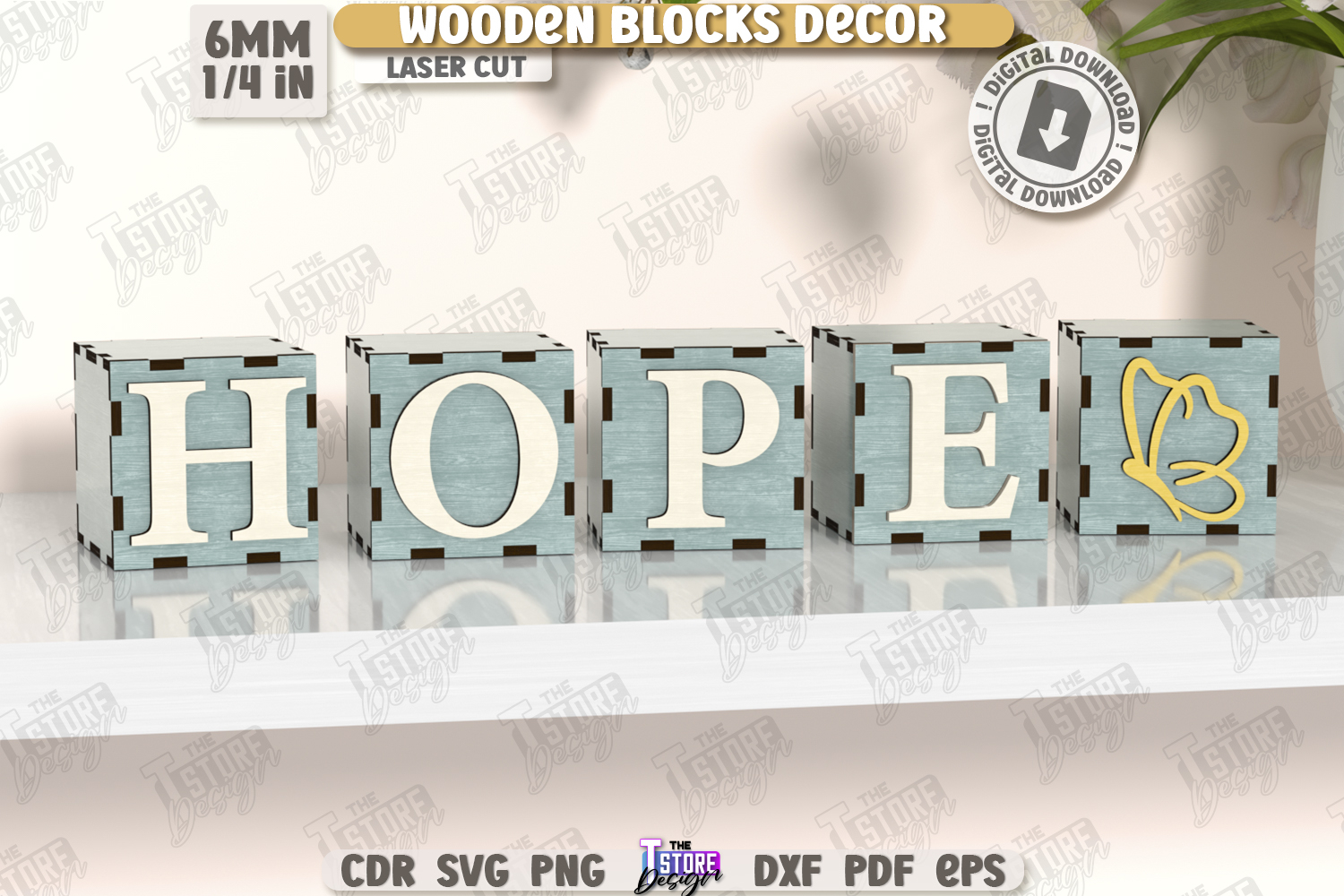 Wooden Blocks Décor Laser Cut | Home Décor SVG | Mini Words | Block Sign | Hope | CNC File