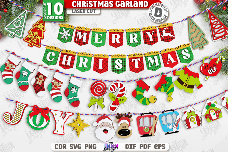 Christmas Garland Laser Cut Bundle, Xmas Banners, Wall Decor