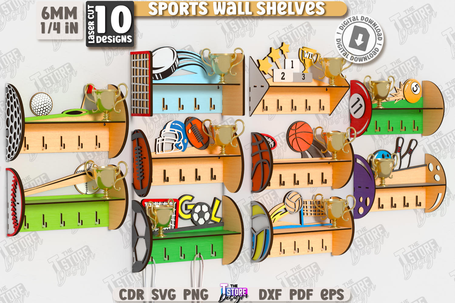 3D Sports Wall Shelves Laser Cut Bundle, Kids Room Decor SVG