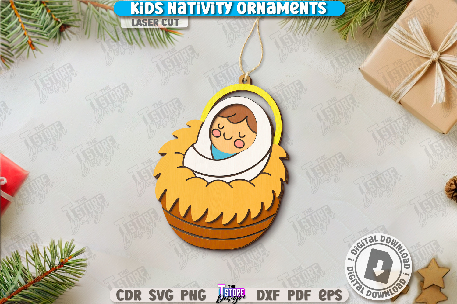 Kids Nativity Ornament Laser Cut | Sacred Christmas Ornaments | Christmas Eve | Holy Night | Nativity Scene | Christ of Born | Biblical Characters | Children's Design | Baby Jesus | Christmas Tree Toy | CNC File