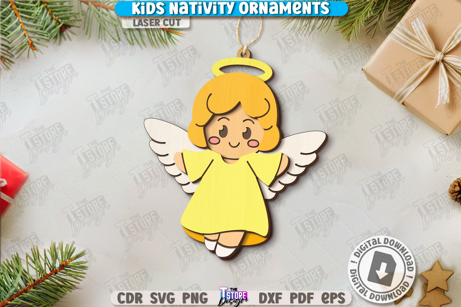 Kids Nativity Ornament Laser Cut | Sacred Christmas Ornaments | Christmas Eve | Holy Night | Nativity Scene | Christ of Born | Biblical Characters | Children's Design | Christmas Angel | CNC File