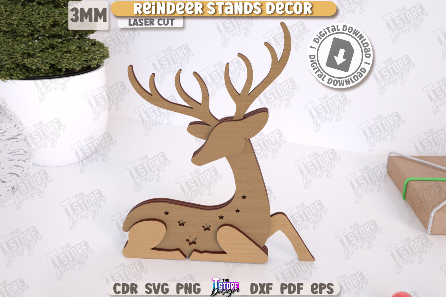 Reindeer Stand Décor Laser Cut|Christmas Decoration|Deer SVG example image 1