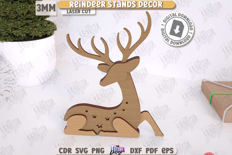 Reindeer Stand Décor Laser Cut | Christmas Stand | Christmas Tabletop Decorations | Xmas SVG | Holidays | Santa's Reindeer | 3D Christmas Character | Northern Deer | Home Decor | Merry Christmas | Wooden Deer | Shelf Stand | Christmas Gift Idea |CNC File