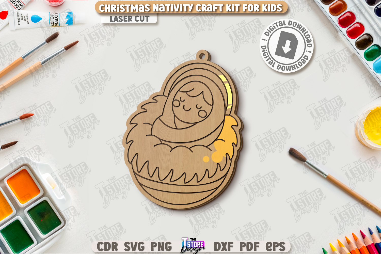 Paintable Nativity Ornament Laser Cut | Sacred Christmas Ornaments | Christmas Eve | Holy Night | Nativity Scene | Kids Design | Christmas Tree Painting Toys | Christ of Born | Biblical Characters | Children's Design | Christmas Ornament | Glowforge Crafts | Baby Jesus | CNC File