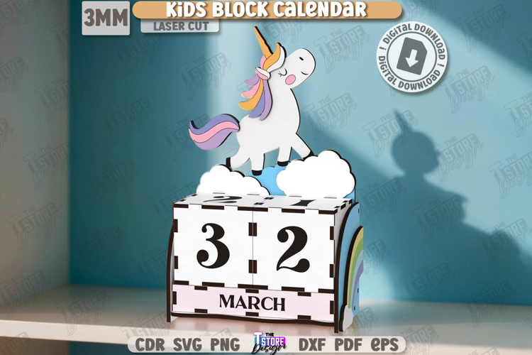 Kids Block Calendar Laser Cut | Child Room Décor | Kids Design | Calendar with Blocks | Two Number Blocks | Calendar with Cubes | Desktop Calendar | Home Decor | Unicorn SVG | CNC File