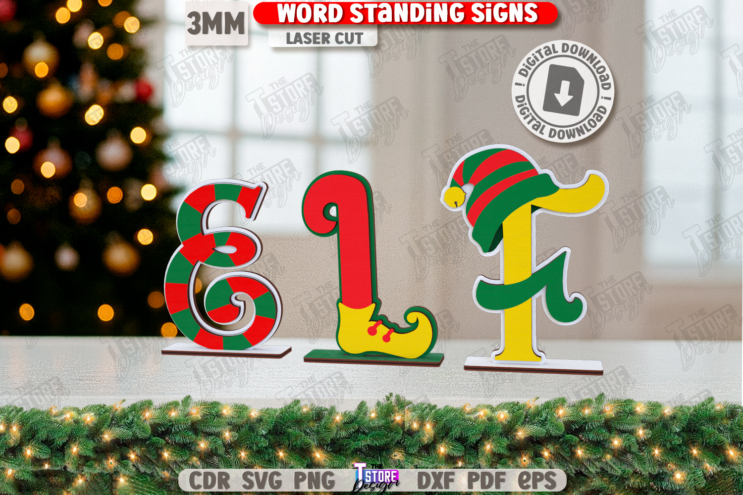 Christmas Word Standing Sign Laser Cut | Winter Standing | Christmas Decor | Christmas Ornament | Holidays Decorations | Happy New Year | Laser Silhouette | Christmas Signs | Christmas Gift Idea | Elf SVG | CNC File
