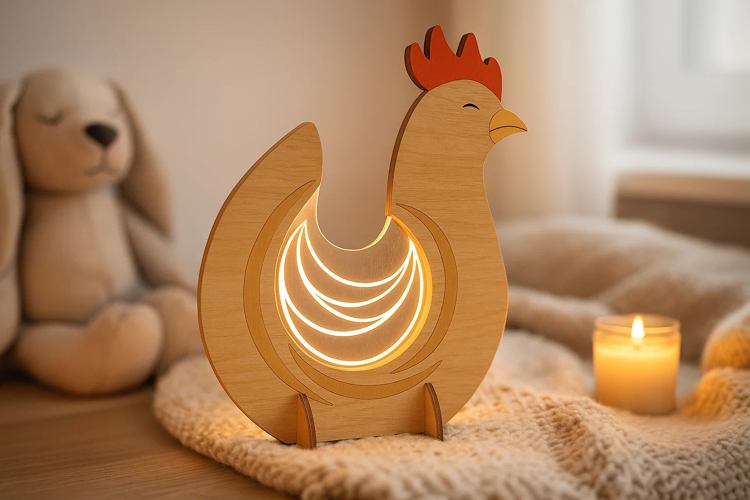 Wood & Acrylic Glow Lamp Laser Cut | Home Décor | Table Led Lamp | Decorative Lamp | Kids Room Décor | Animals LED Night Light | Kids Bedside Lamp | Chicken SVG | CNC File